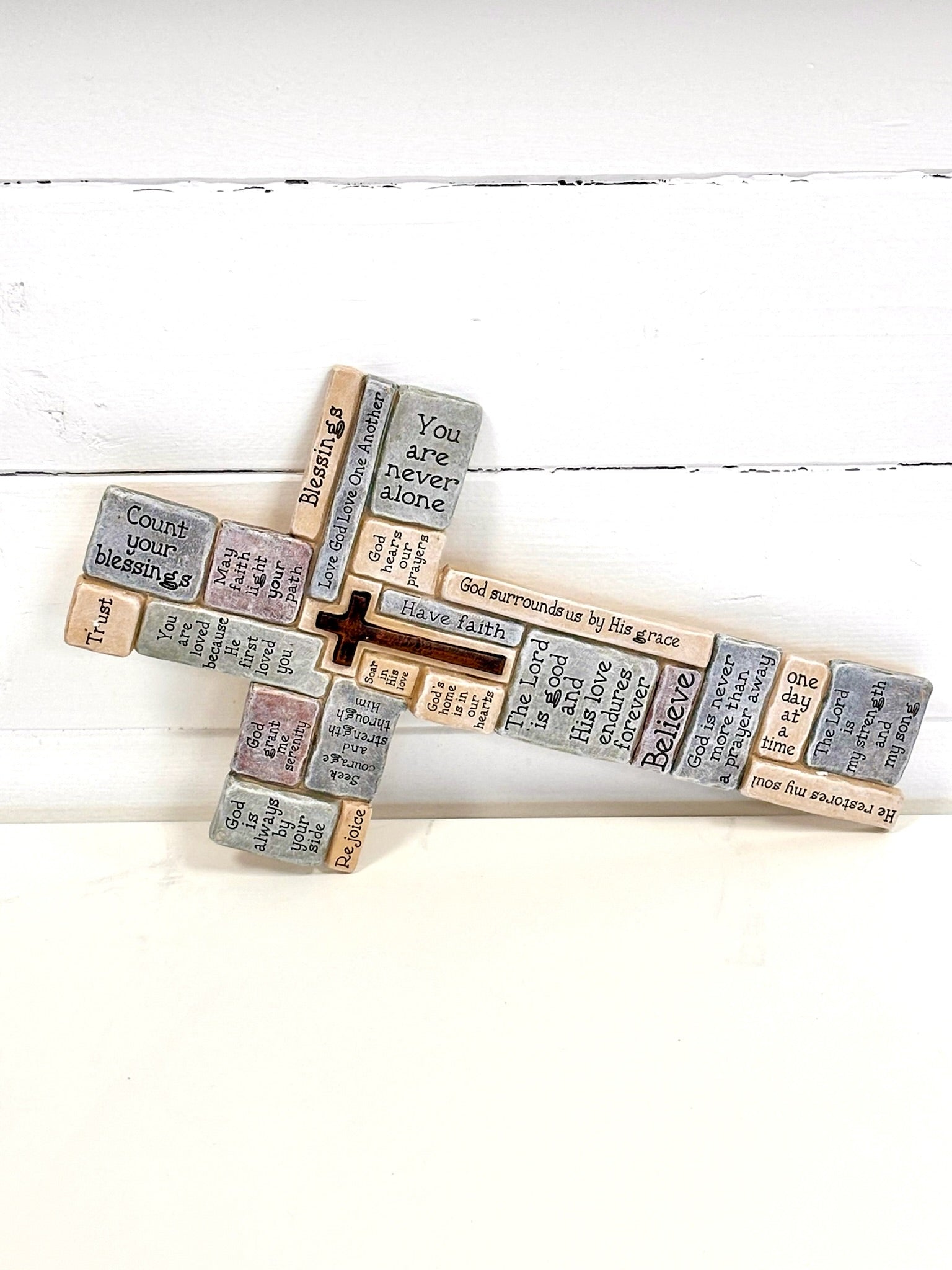 Immerse yourself in the perfect blend of spirituality and style with our Crossword Wall Cross. Crafted with great attention to detail and design, this resin stoneware piece measures approximately 16 x 8 x 2 inches and makes for a thoughtful gift or an elegant addition to any home décor. Perfect for your office, study, or living room, this cross comes neatly packaged in a box for easy gifting.